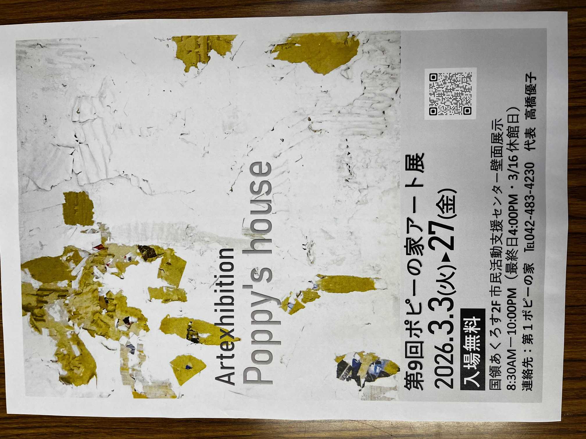 2月10日から20日まで国領駅近くの「ほっとれーる」で「ポピー展」を開催しています。みんなのアート作品の展示だけではなく、花かごなどの販売もしています。ぜひ、お茶をしながら鑑賞していただけたら嬉しいです。